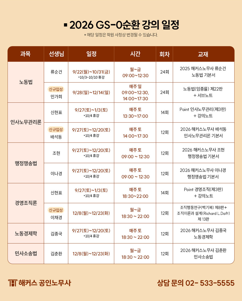 [강의안내] 2026 공인노무사 2차 대비 GS-0순환 강의 일정