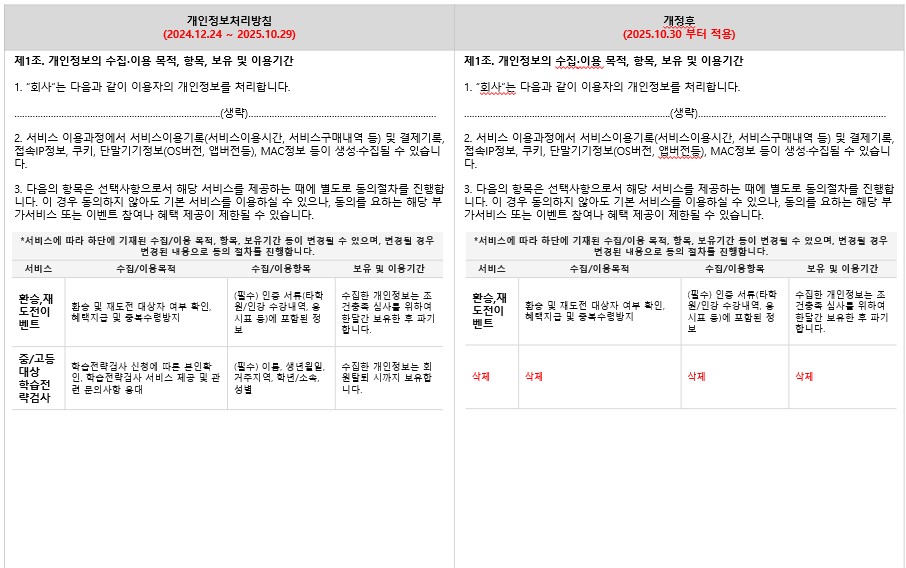 챔프스터디의 개인정보처리방침이 아래와 같이 개정됨을 알려 드리오니